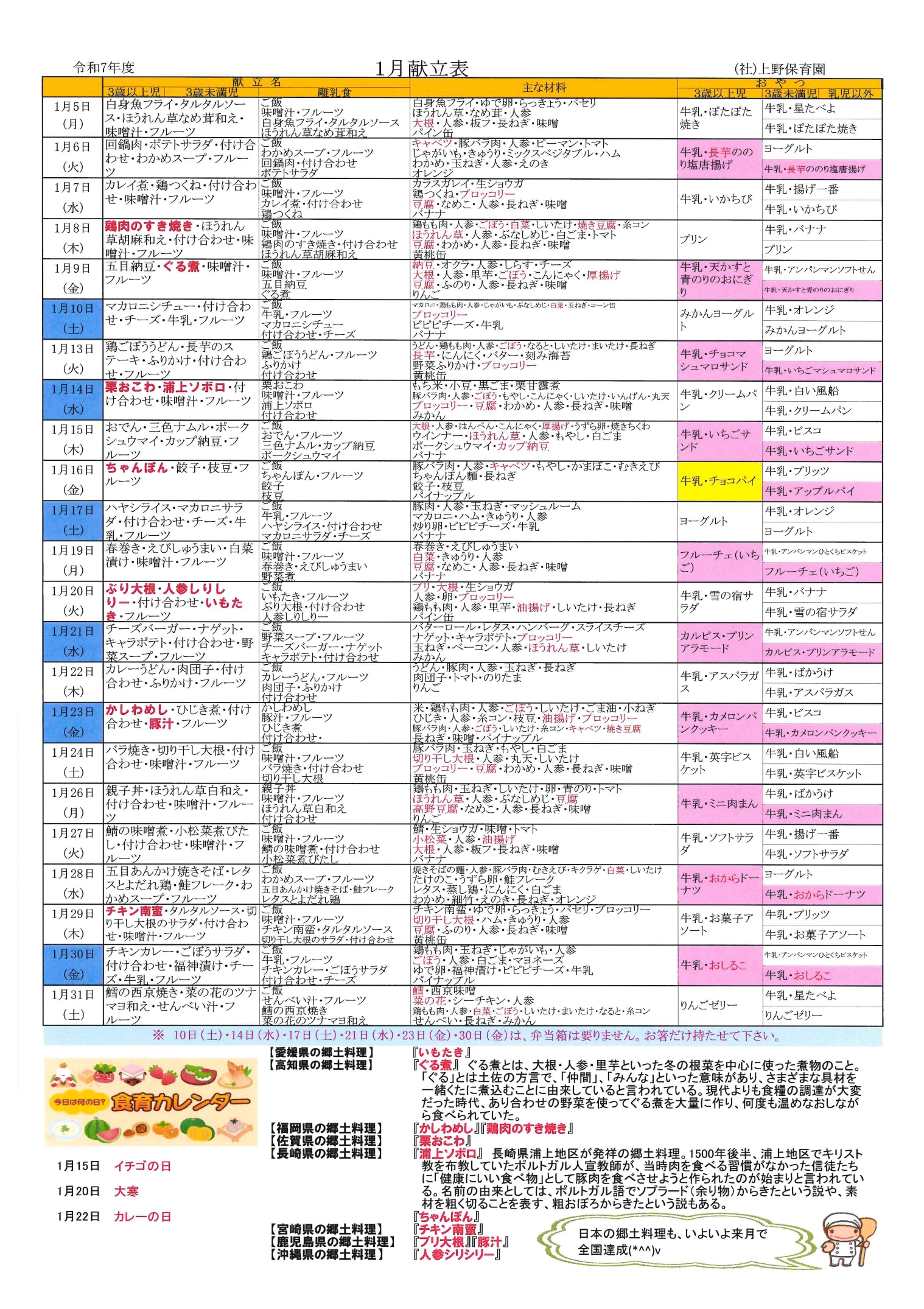 1月の献立表ですみてね!